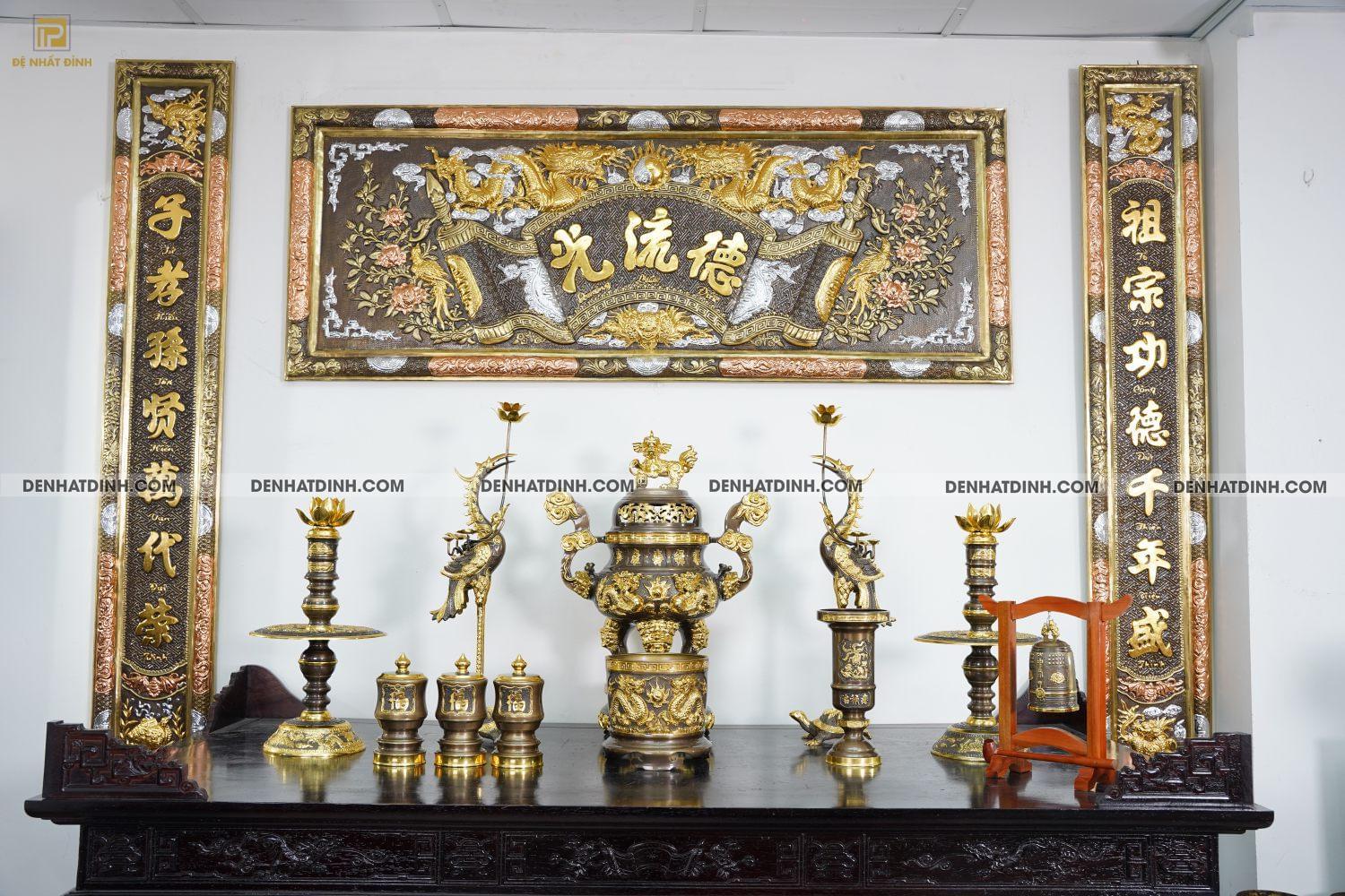 Bộ đỉnh đồng ngũ sự không chỉ là vật phẩm thờ cúng mà còn là "linh hồn" của không gian tâm linh, nơi con cháu gửi gắm lòng thành kính đến tổ tiên. Được chế tác từ làng nghề Vạn Điểm nổi tiếng, sản phẩm hội tụ đầy đủ các yếu tố: Tâm - Tín - Mỹ.